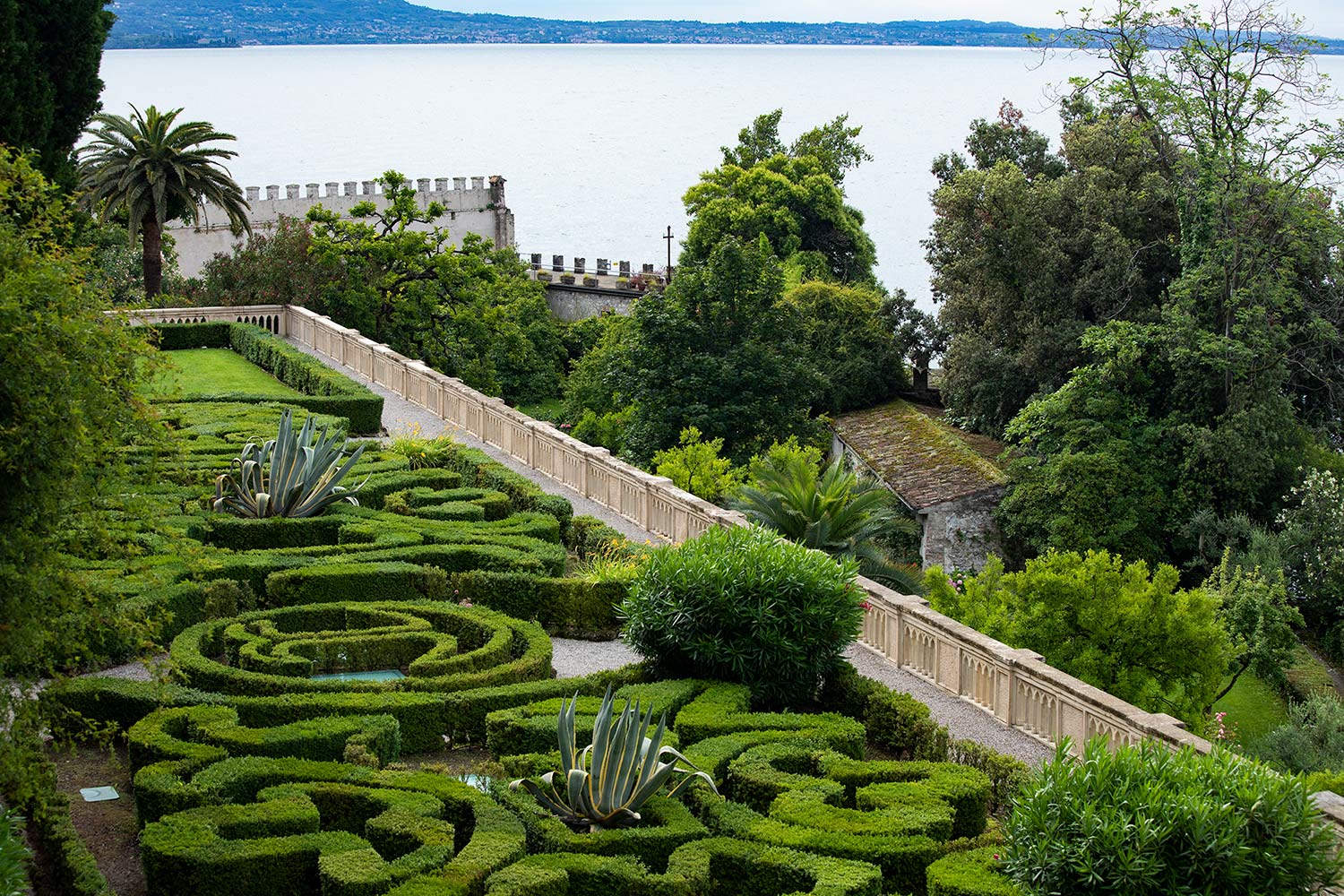 Genießen Sie eine atemberaubende Kulisse für Ihre Hochzeitszeremonie mit Blick auf den See inmitten von Terrassen und exotischen hängenden Gärten unter der majestätischen Villa, dem imposanten Turm und den alten Mauern des Klosters.