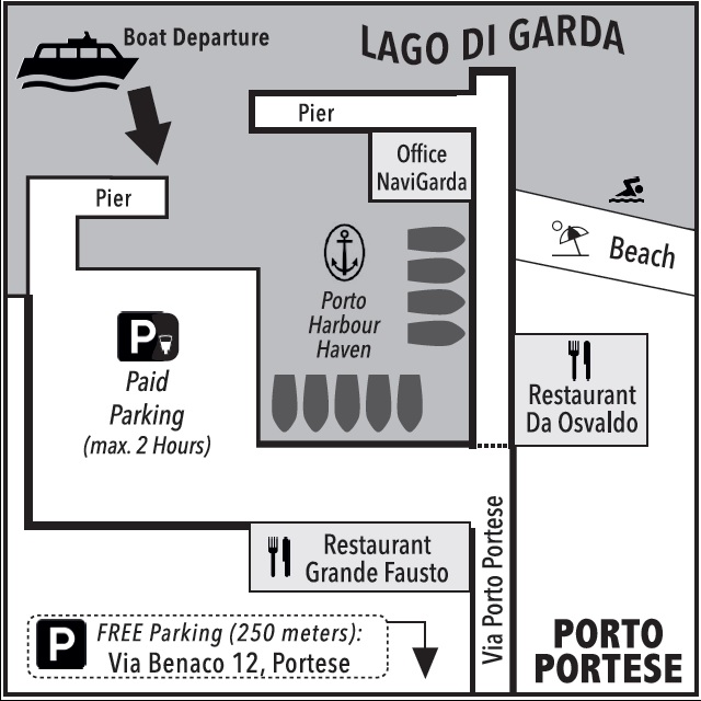 Unten finden Sie eine Karte des Hafens und Fotos des Bootes (Danieli Boat Service +39 3385908161).